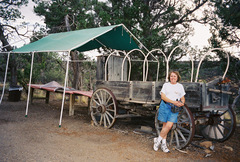Kathy investigated this old disused chuckwagon at a picnic ground.